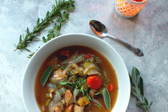 Turkey Soup with Turmeric, Ginger & Fresh Herbs