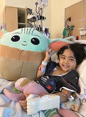 Doctors said Liam had suffered an aneurysm while riding his bike. After removing a piece of Liam’s skull to relieve pressure, he was diagnosed with AVM. He spent two-and-a-half weeks in Kapiolani’s Pediatric Intensive Care Unit (PICU) and six more weeks in the Carters unit, where care providers worked with him as he relearned how to walk, brush his teeth, eat and speak.